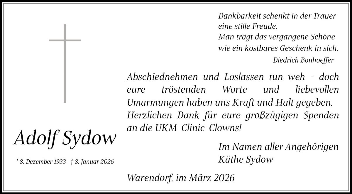 Mit großer Anteilnahme habe ich vom Tod von Adolf erfahren.