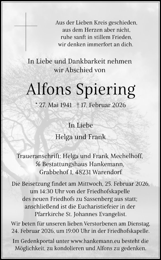 gestorben am 17. Februar 2026 in Warendorf