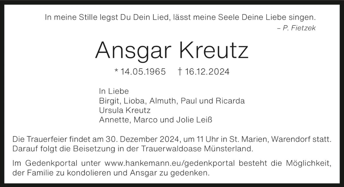 Ansgar Kreutzgestorben am 16. Dezember 2024