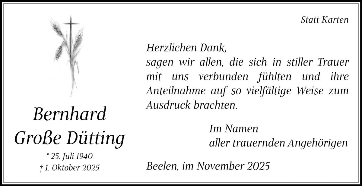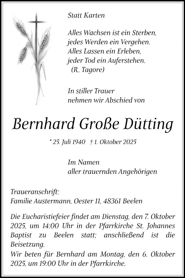 Bernhard Große Düttinggestorben am 1. Oktober 2025