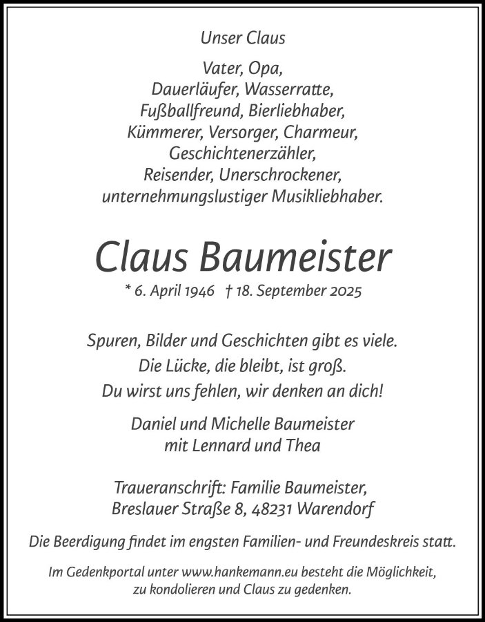 Claus Baumeistergestorben am 18. September 2025