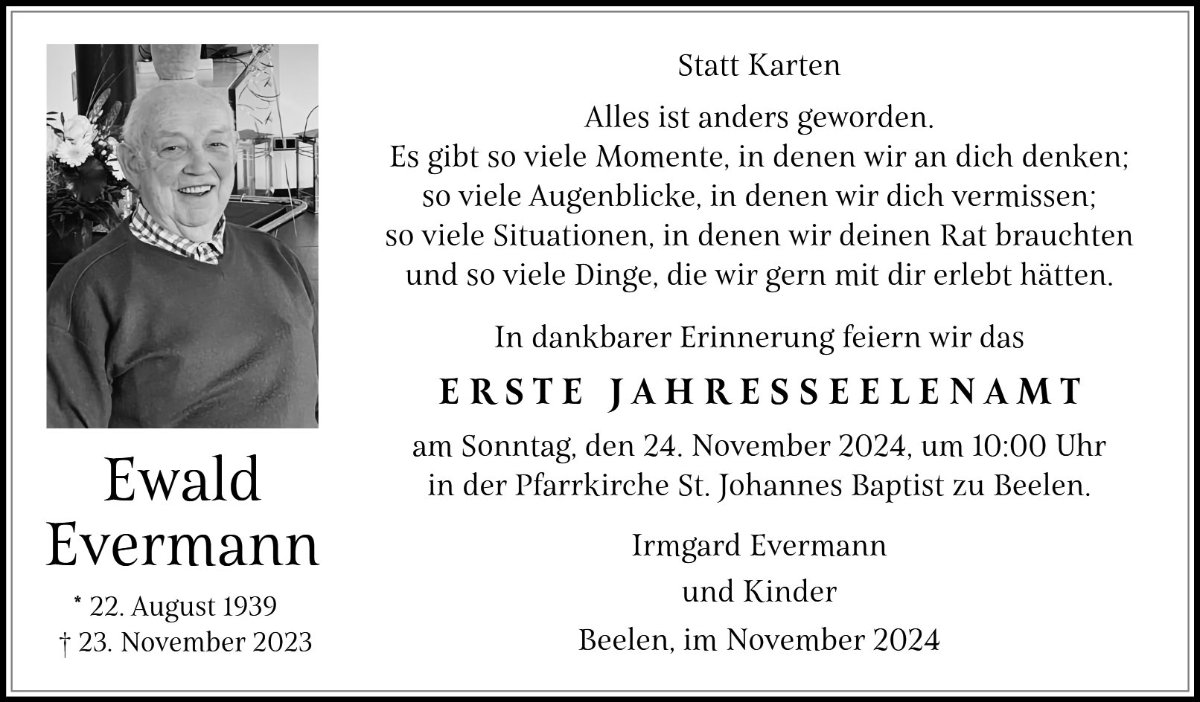 Erstes Jahresseelenamt, St. Johannes Baptist Beelen
