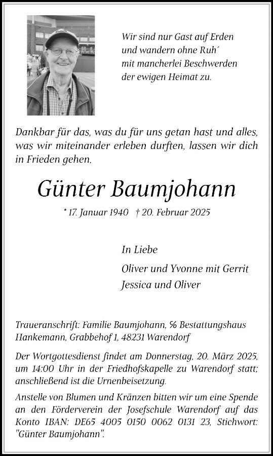 Herzliche Teilnahme zum Tod von Günter.