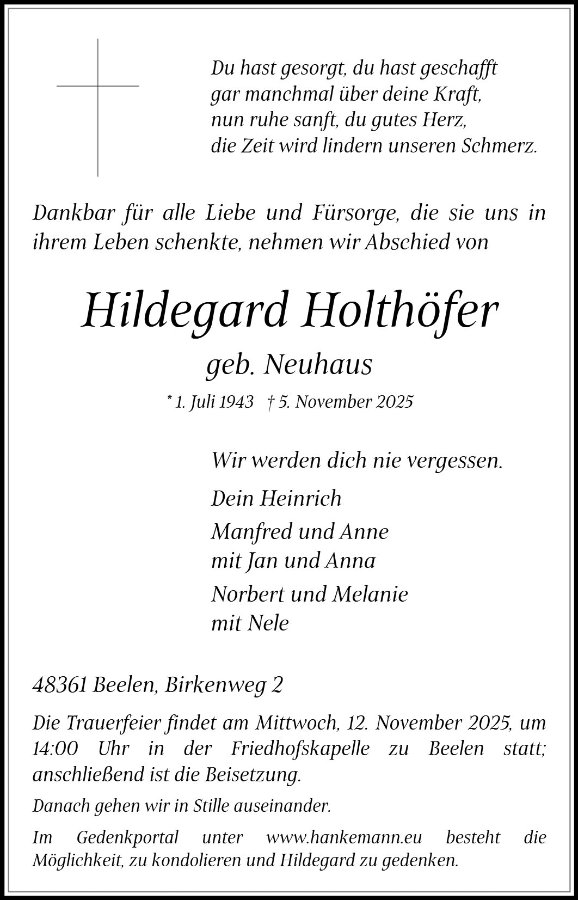 wir möchten Euch zu dem bitteren Verlust von Hildegard unser tiefes Mitgefühl aussprechen.