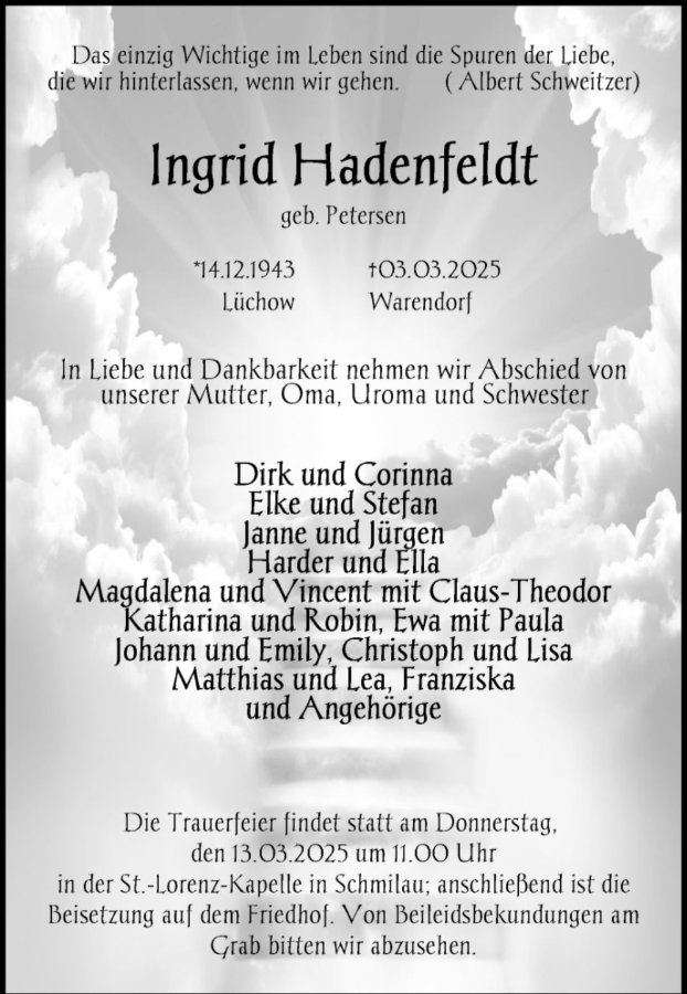 Ingrid Hadenfeldtgestorben am 3. März 2025