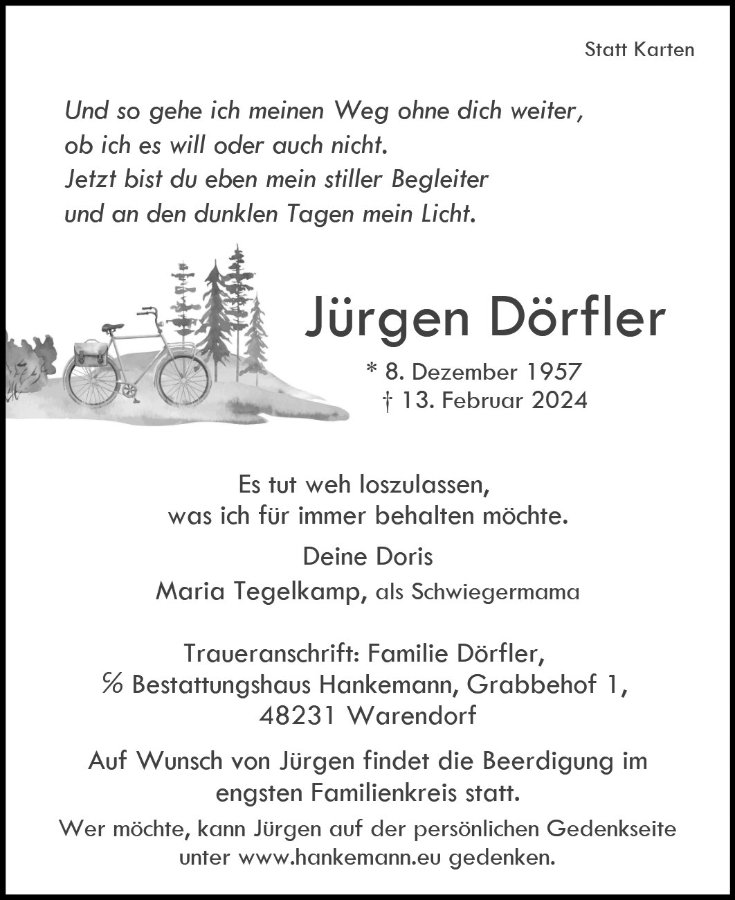 Liebe Doris, ich wünsche dir viel Kraft in dieser schweren Zeit. Ich hoffe, dich bald mal wieder am Feidiek zu sehen.