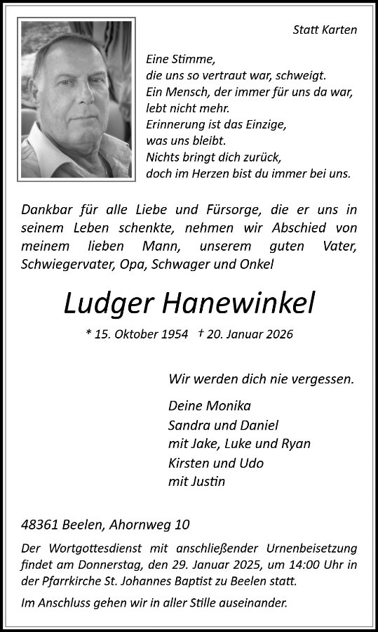 Mit dir ging ein Teil unserer gemeinsamen Geschichte. Die vielen Kegelabende, Fahrradtouren, und Feiern mit dir werden uns fehlen. Du wirst uns fehlen und einen Platz in unserer Mitte behalten. Lutz, wir wünschen dir eine gute letzte Reise! Liebe Moni und Familie Viel Kraft in dieser schweren Zeit, unsere Gedanken sind bei euch.