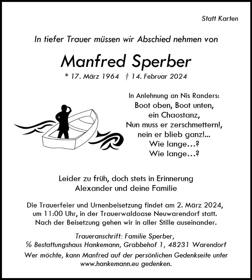Manfred war ein Mensch auf den man sich stets verlassen konnte.
