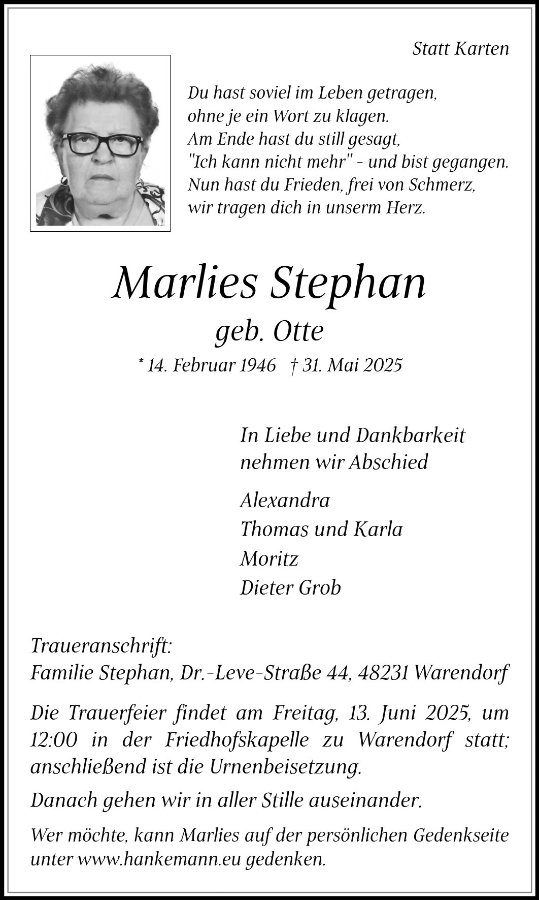 Marlies Stephangestorben am 31. Mai 2025