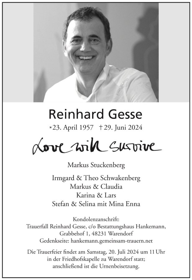 Reinhard Gessegestorben am 29. Juni 2024