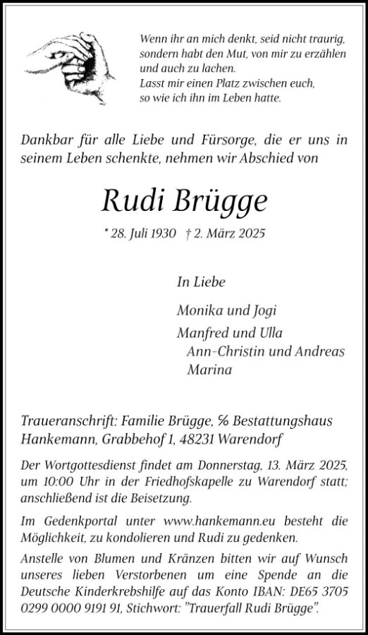 Euch als Familie wünschen wir über die Trauer hinaus viele schöne Erinnerungen an Rudi.