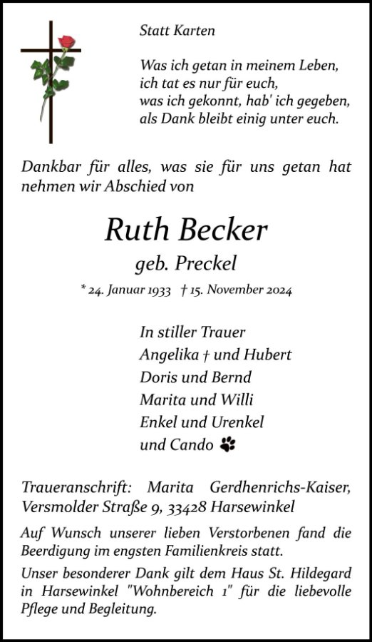 In Liebe und Dankbarkeit Deine Dich liebende Tochter Marita