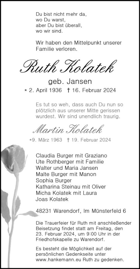 Sprechen Sie im Kondolenzbuch den Hinterbliebenen Ihr Beileid aus und teilen Sie persönliche Gedanken und Erinnerungen mit anderen.