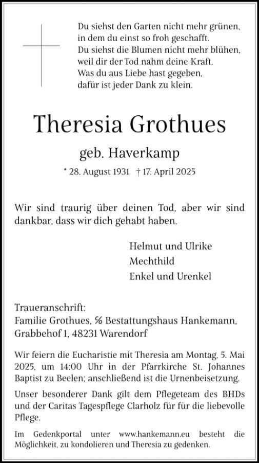geboren am 28. August 1931 in Vohren, jetzt Warendorf
