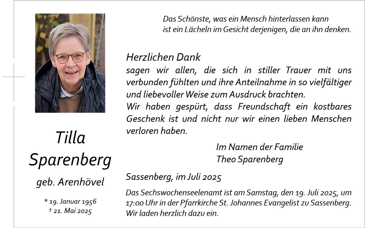 Tilla Sparenberggestorben am 21. Mai 2025