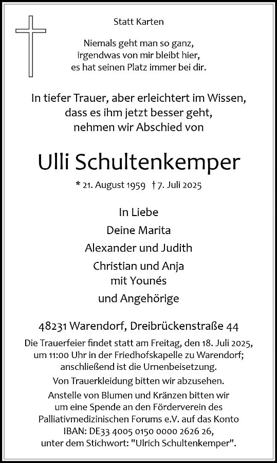 Ulli Schultenkempergestorben am 7. Juli 2025