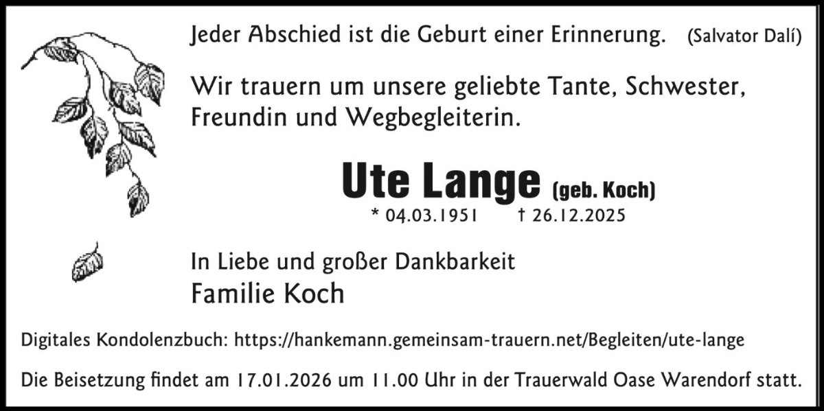 Lesen Sie hier die Anzeigen und Trauerpost!