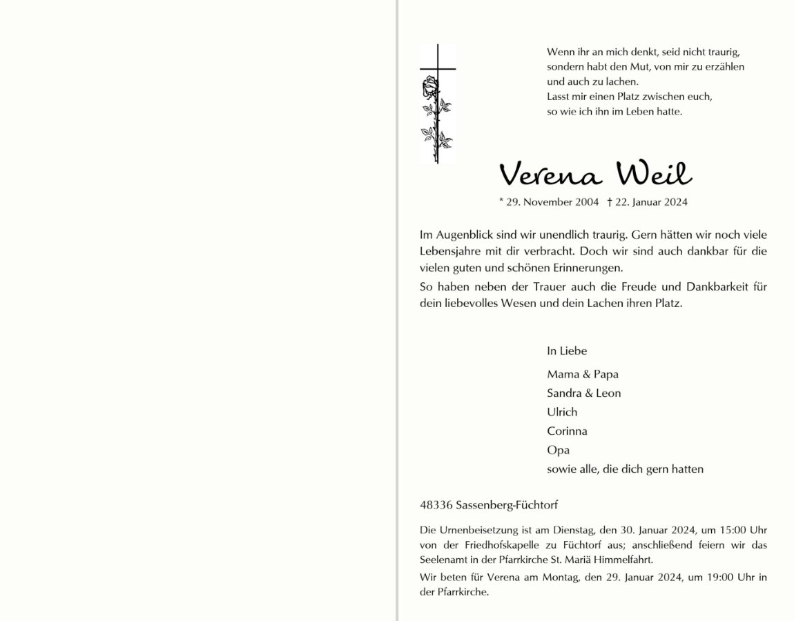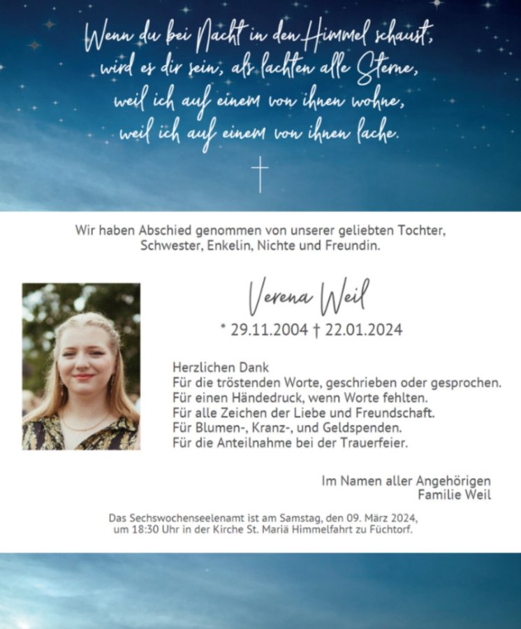 unsere liebe Tochter, Schwester, Enkelin, Nichte und Freundin.