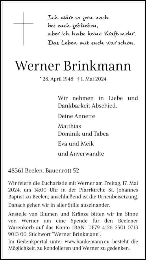 Werner Brinkmanngestorben am 1. Mai 2024